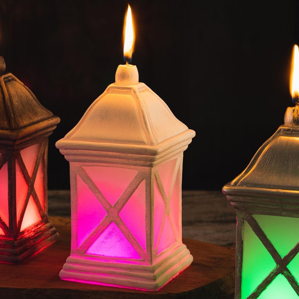 - Dekorative Kerze aus Wachs in Laternenform verleiht Ihrem Zuhause eine gemütliche und einladende Atmosphäre. Nach dem Anzünden fängt sie an von innen in wechselnden Farben zu leuchten.